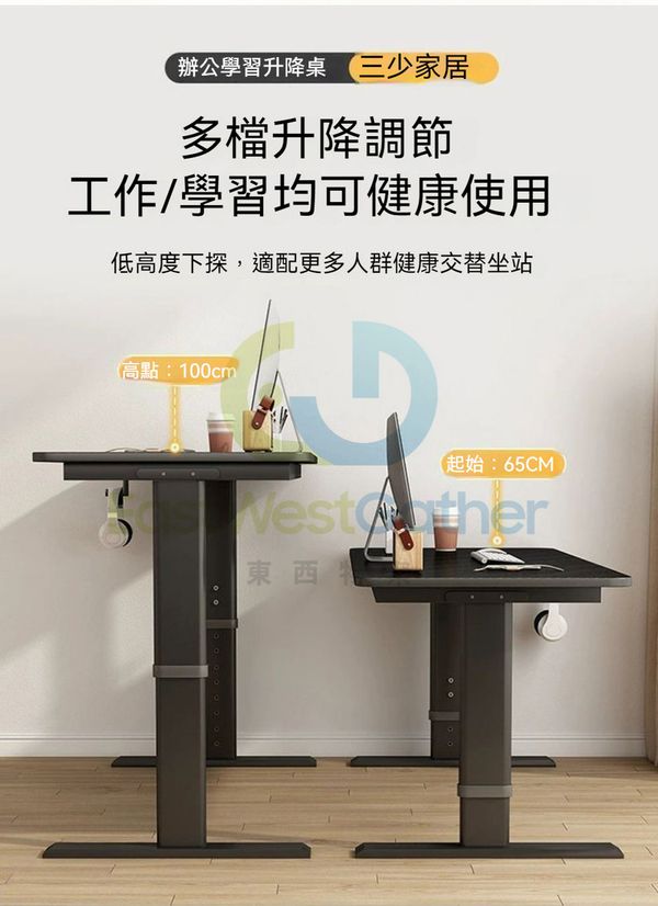 包安裝送貨-【白色+白架】100*60*65CM-升降枱 升降電腦枱 電競升降枱 办公枱 学习枱 游戏枱 C21093-01