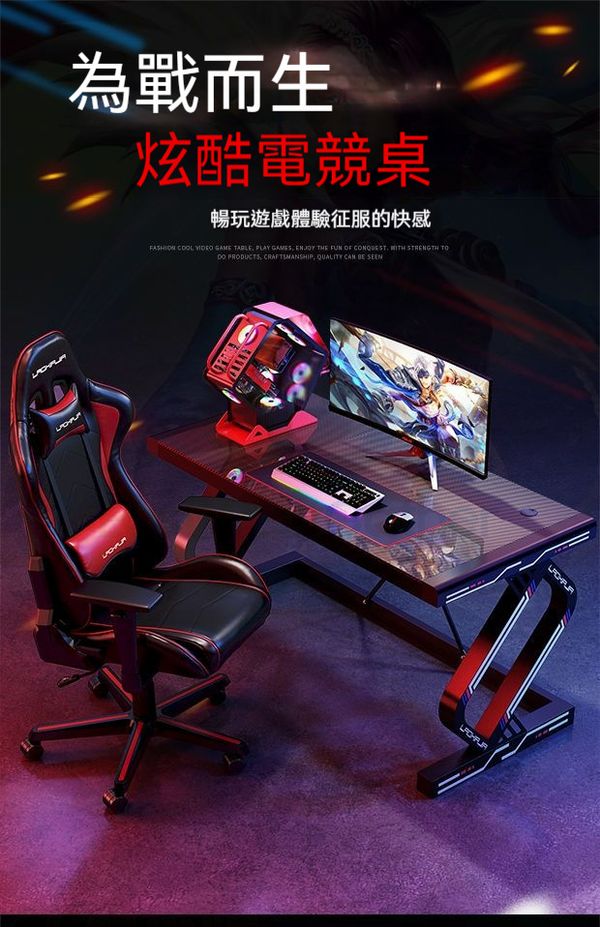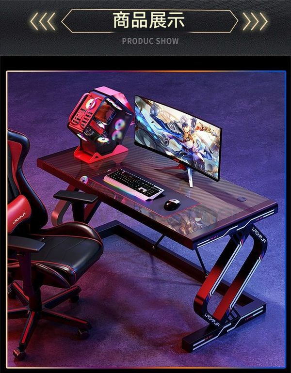 網紅電競枱臺式家用電腦枱鋼化玻璃碳纖維紋理電腦枱加厚加固枱