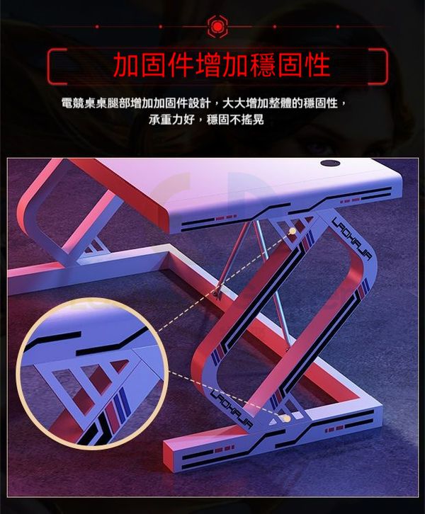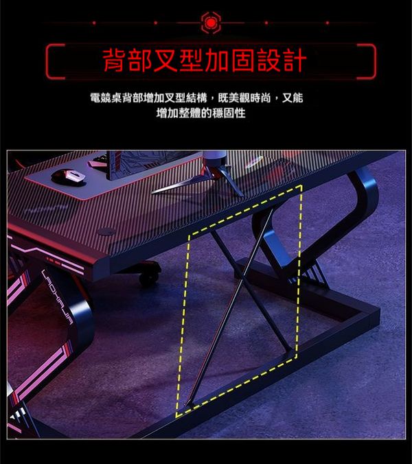 背部又型加固設計:電競桌背部增加又型結構,既美觀時尚,又能增加整體的穩固性