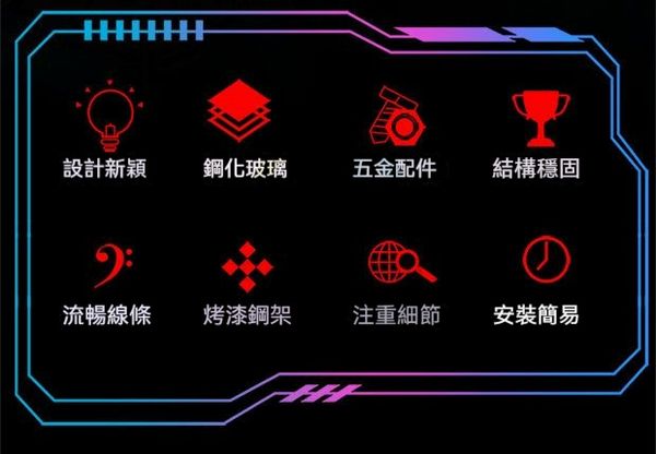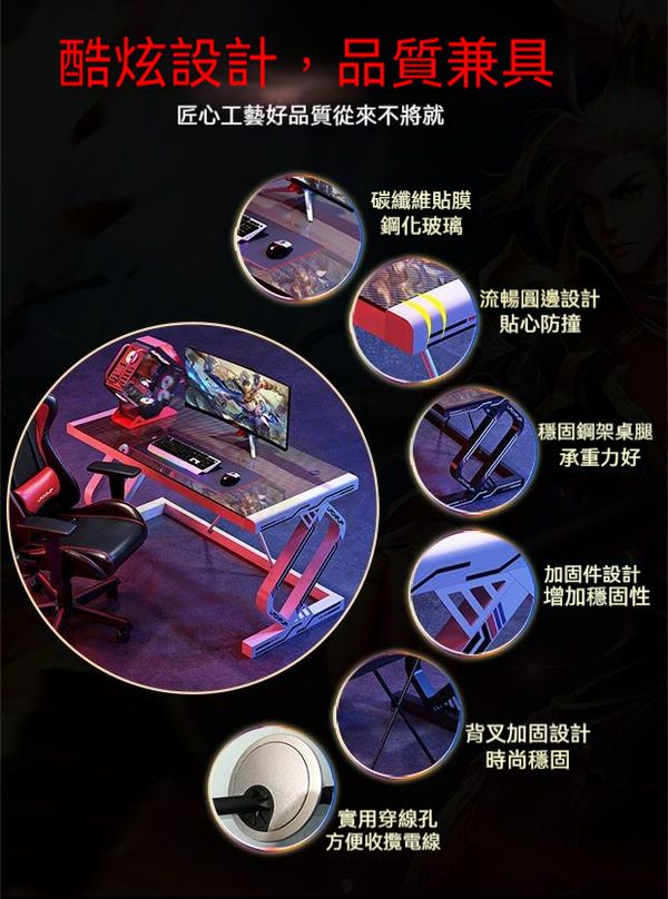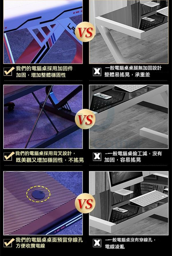背部又型加固設計:電競桌背部增加又型結構,既美觀時尚,又能增加整體的穩固性