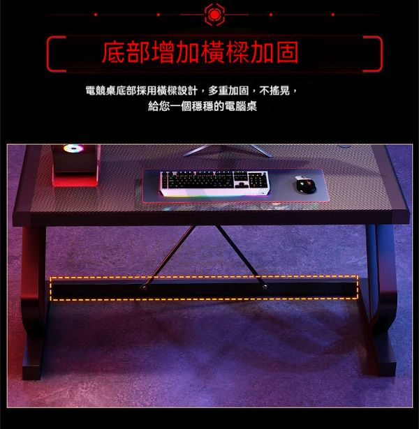 底部增加横樑加固:電競桌底部探用横樑設計,多重加固,不摇晃,給您一個穩穩的電腦桌