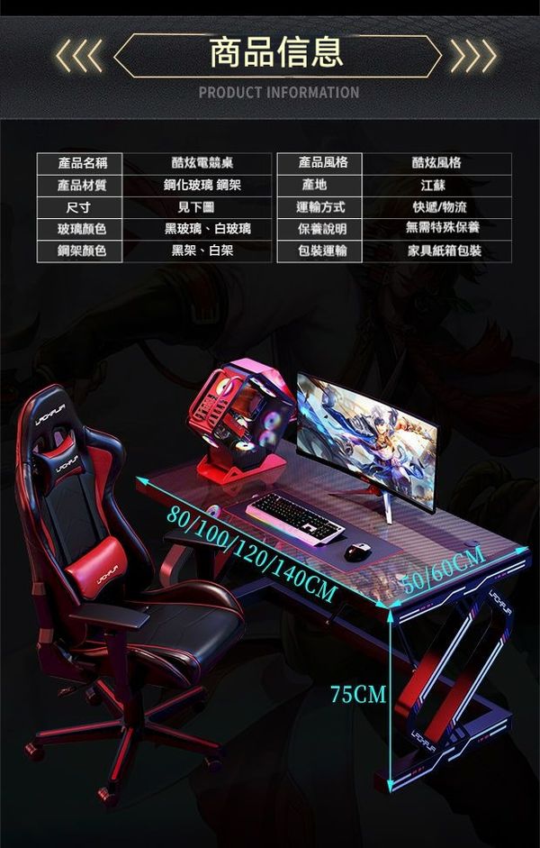 網紅電競枱臺式家用電腦枱鋼化玻璃碳纖維紋理電腦枱加厚加固枱