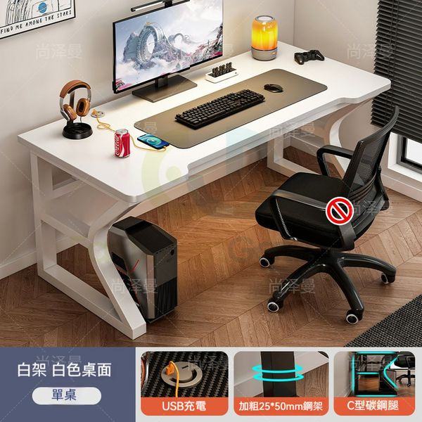 包安裝送貨-【白架白麵單桌】(送USB充電)【140x60x75CM】-電腦枱 辦公枱 學習枱 寫字枱 C22025-62