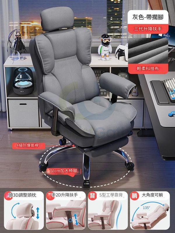 包安装送貨-【三代升降扶手】【四級防爆氣杆】灰色+腳踏、鋁合金腳-學習椅電腦椅辦公椅寫字樓椅子 C22069-45