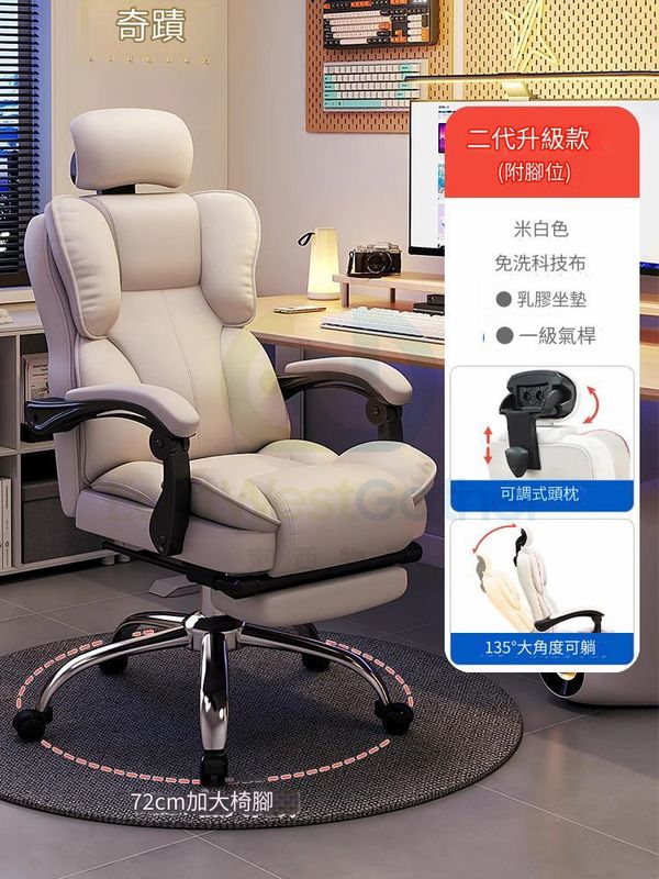 包安装送貨-【二代升級款】米白色+腳踏+一級氣杆、鋼制腳-學習椅電腦椅辦公椅寫字樓椅子 C22069-94