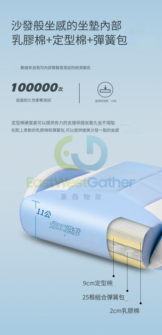 沙發般坐感的坐垫内部乳膠棉+定型棉+彈簧包