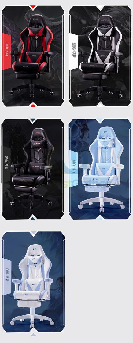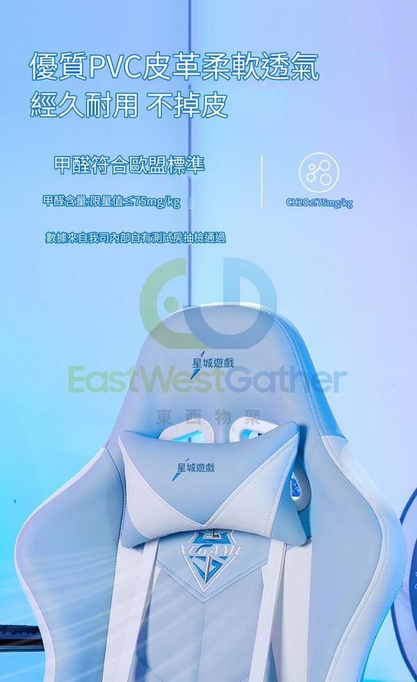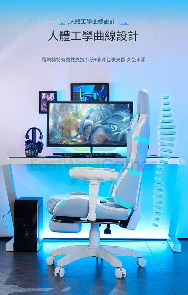 人體工學曲線設計:電競椅特有雙枕支撑系统+靠背包裹支撑,久坐不累