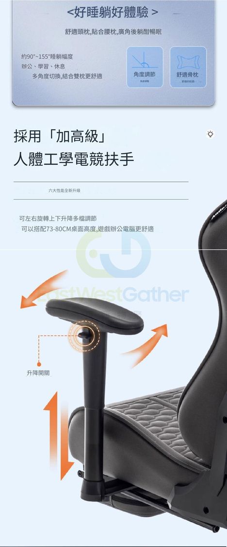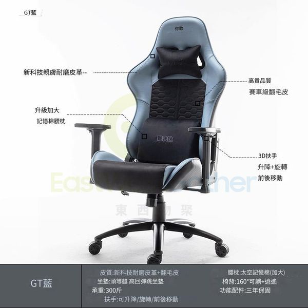 包安裝送貨-GT藍【3D機械臂】【科技皮革+翻毛皮】鋼制腳-電競椅 學習椅 電腦椅 辦公椅 寫字樓椅子 C22072-08