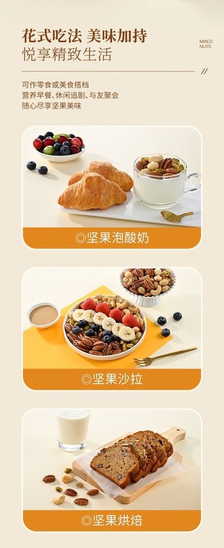 可作零食或美食搭档营养早餐、休闲追剧、与友聚会随心尽享坚果美味