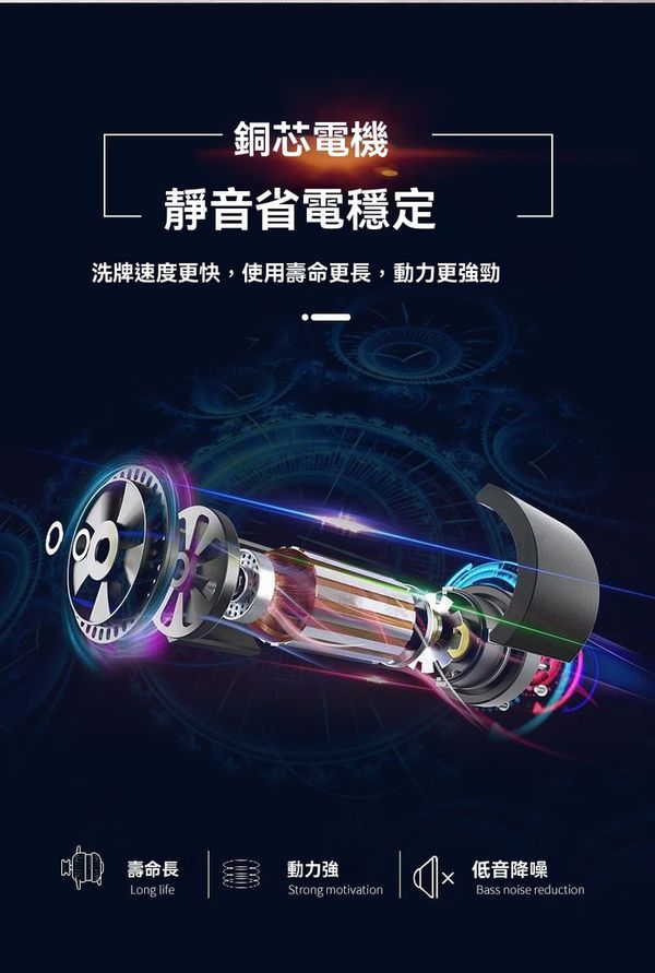 銅芯電機 靜音省電穩定:洗牌速度更快,使用壽命更長,動力更强劲