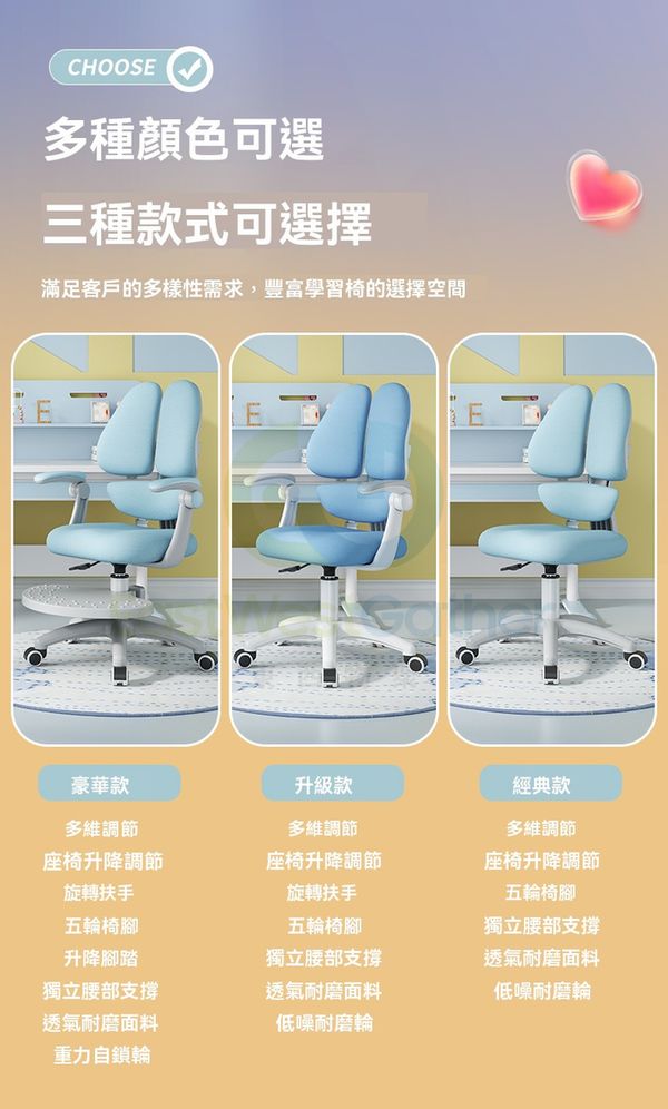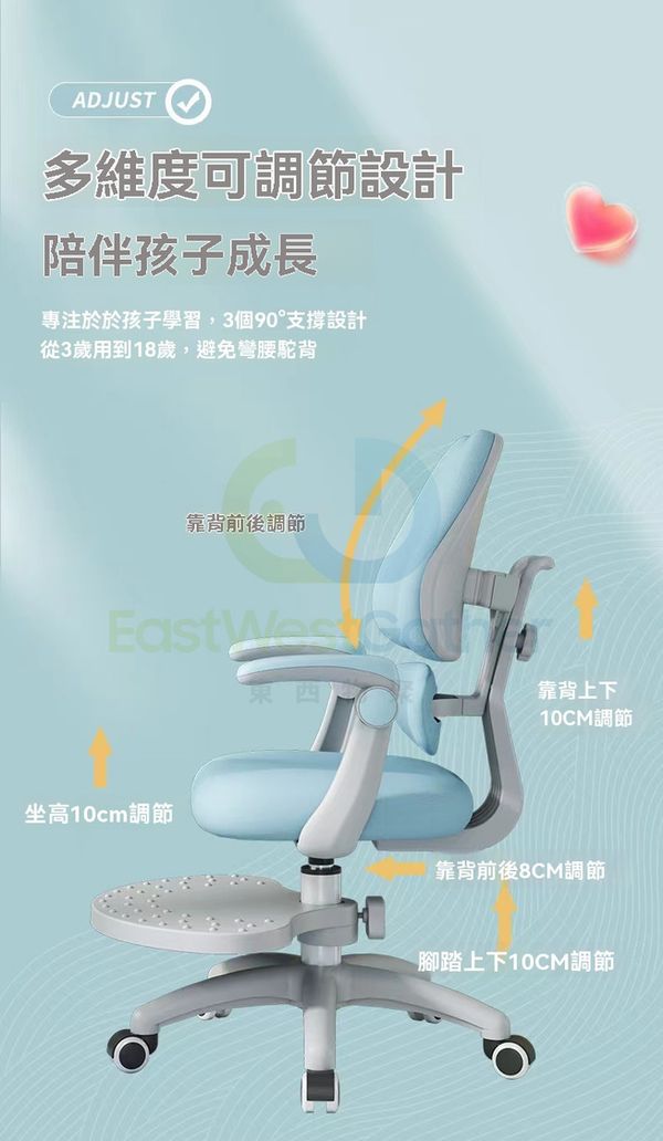 多維度可調節設計:專注於於孩子學習,3个90°支撐設計從3歲用到18歲,避免彎腰駝背