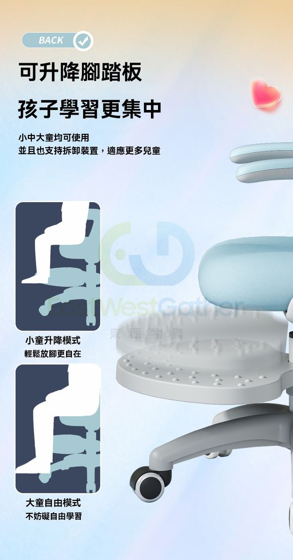 創新升級 配備彈性腰托:孩子入座時給予強有力的支撑感緊貼背部空間緩解久坐壓力