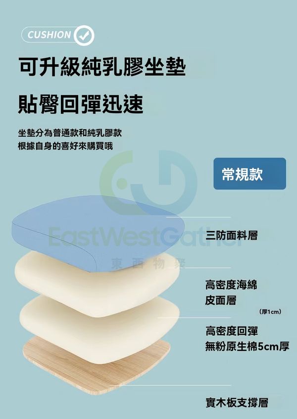 高彈飽滿坐墊久坐也不塌陷:坐塾内部填充高回彈原生棉迅速回彈且不易塌陷,坐久不覺臀部僵硬酸服