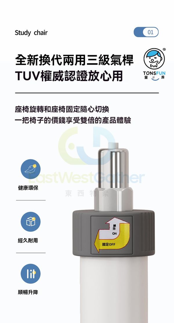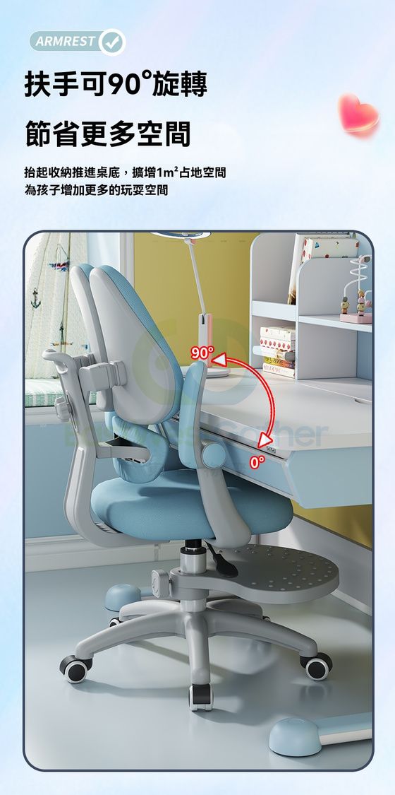包安裝送貨-高級灰【座位旋轉】【純乳膠坐墊】+五爪腳+腳踏+重力鎖輪+翻轉扶手-兒童椅 學習椅 寫字椅 坐姿矯正椅 書桌椅 C22152-33