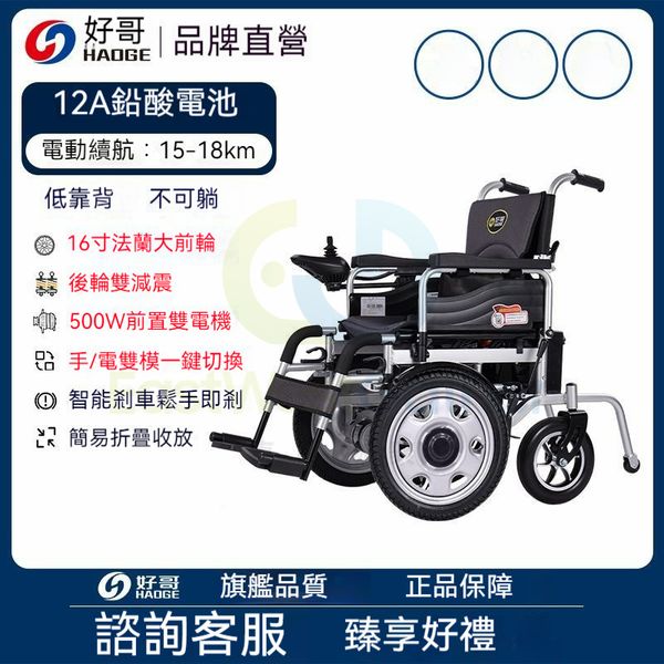 包安裝送貨-低靠背【越障大前輪+四減震】法蘭輪轂 、12A鉛酸電池【續航15-20公里】-電動輪椅 老人代步車 電動折疊輪椅 C22159-01