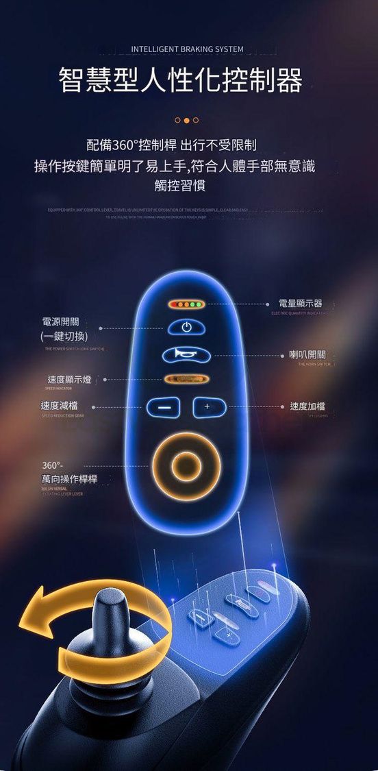 智慧型人性化控制器:配備360°控制桿 出行不受限制