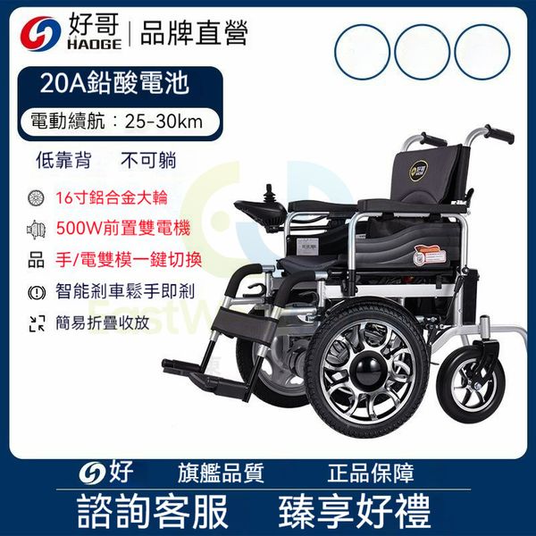 包安裝送貨-低靠背【越障大前輪+四減震】鋁輪轂 、20A鉛酸電池【續航23-30公里】-電動輪椅 老人代步車 電動折疊輪椅 C22159-08