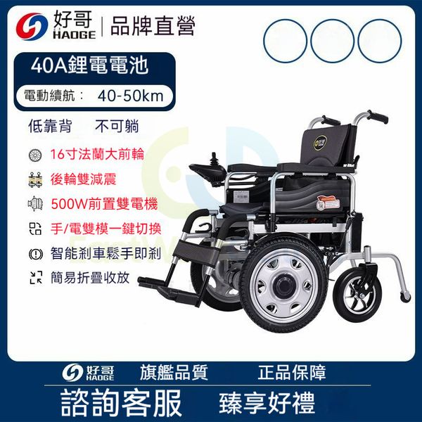 包安裝送貨-低靠背【越障大前輪+四減震】鋁輪轂 、40A鋰電池【續航40-50公里】-電動輪椅 老人代步車 電動折疊輪椅 C22159-12