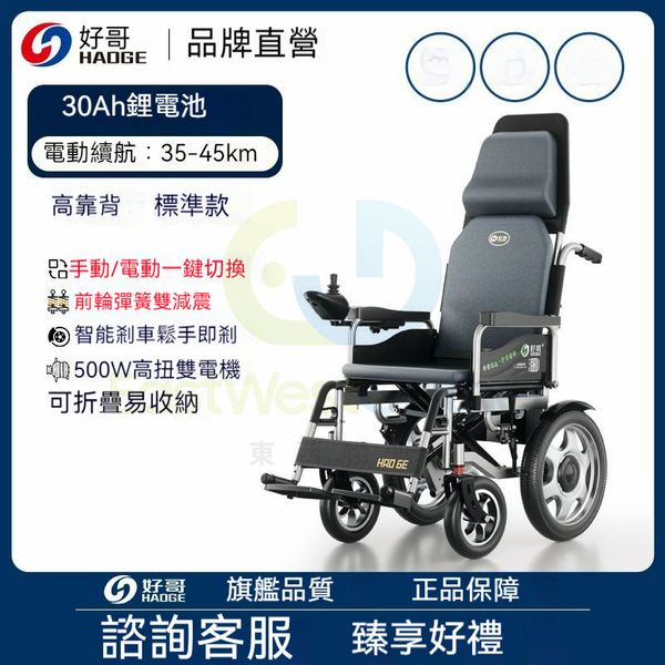 包安裝送貨-高靠背【舒適大後輪+四減震】法蘭輪轂 、30A鋰電池【續航35-40公里】-電動輪椅 老人代步車 電動折疊輪椅 C22159-29
