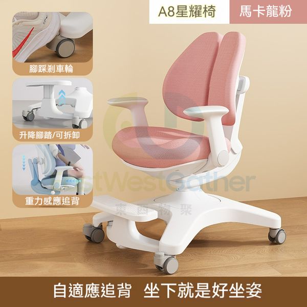 包安裝送貨-A8星耀椅pro【重力自動追背】-馬卡龍粉-兒童椅 學習椅 寫字椅 坐姿矯正椅 書桌椅 C22175-02