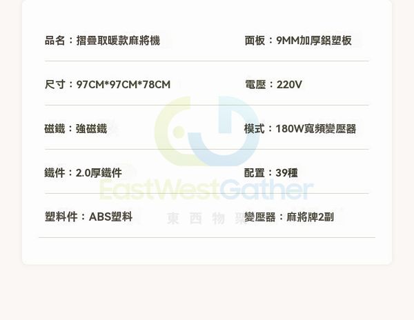 包安裝送貨-K900靜音取暖五件套【40號72張】-電動麻雀機、電動麻將機、電動麻雀枱 C22179-355