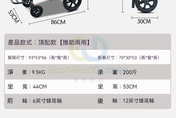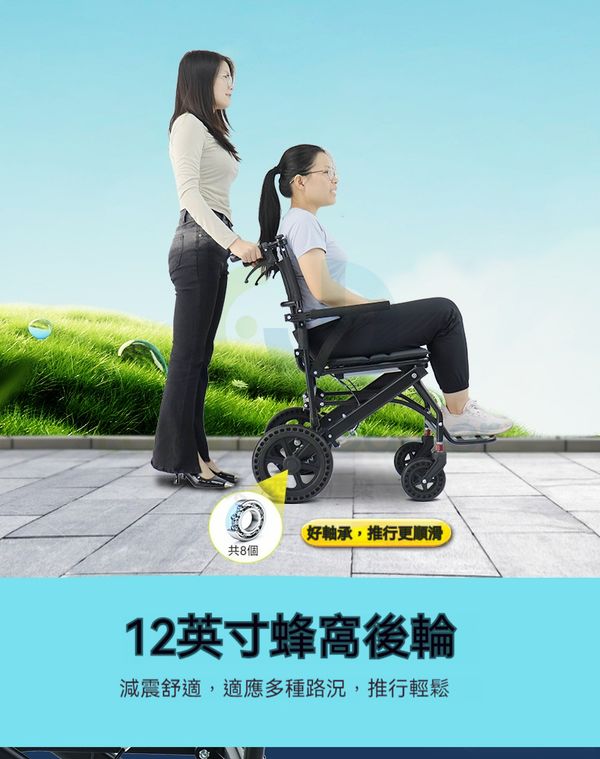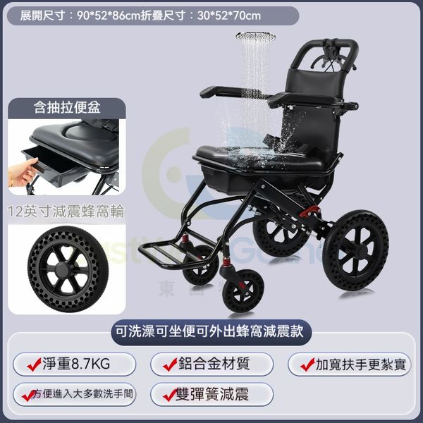 包安裝送貨-【可洗澡可坐便可外出蜂窝大轮款】-輪椅 老人代步車 折疊輪椅 C22182-23