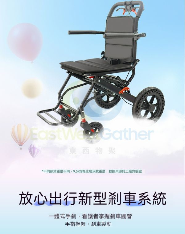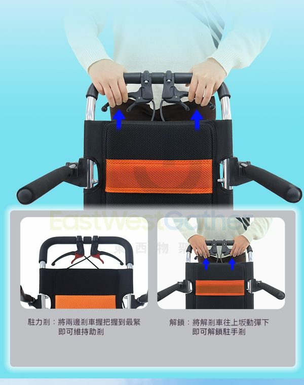 一體式手刹,看護者掌握刹車圆管手指握緊,刹車製動