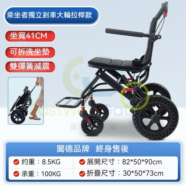 包安裝送貨-帶拉杆+乘坐者獨立刹車款-輪椅 老人代步車 折疊輪椅 C22184-06