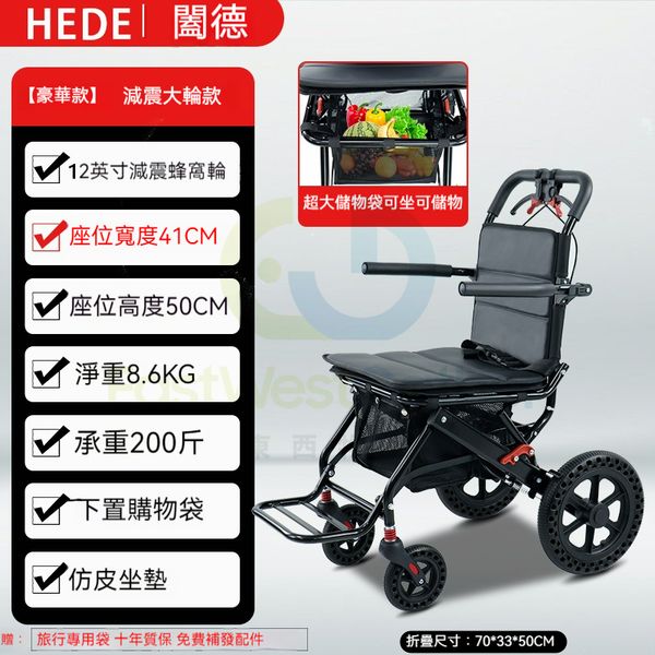 包安裝送貨-【超大置物袋】大輪減震款-輪椅 老人代步車 折疊輪椅 C22184-08