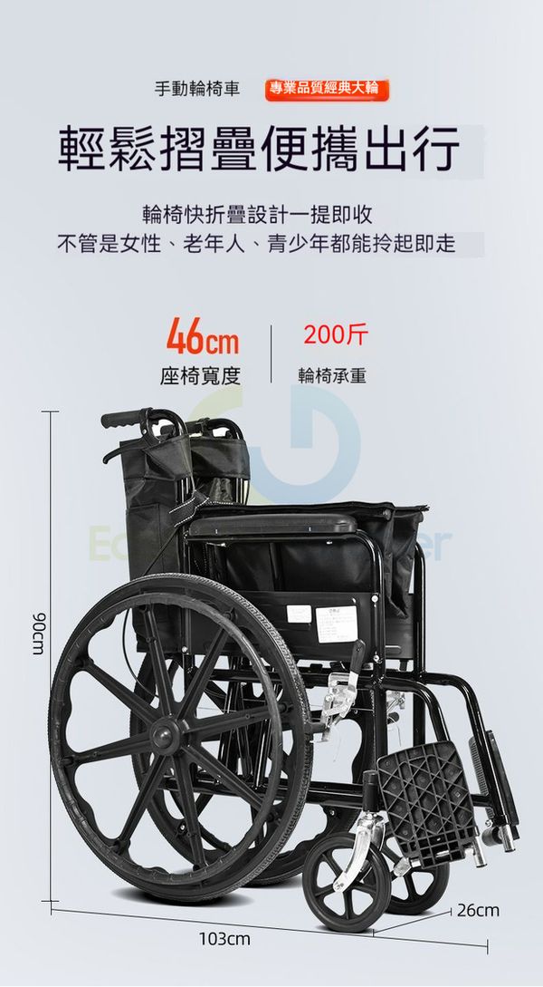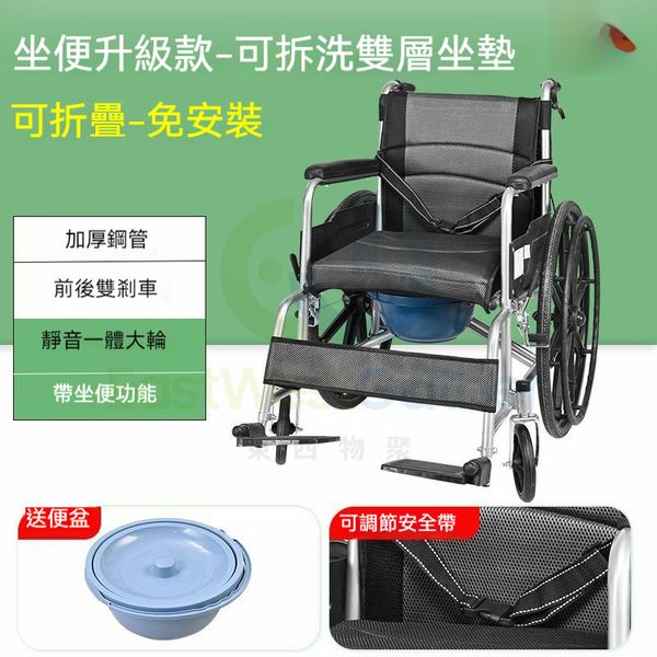包安裝送貨-【24寸升級大輪坐便款】雙層墊送便桶-輪椅 老人代步車 折疊輪椅 C22186-02