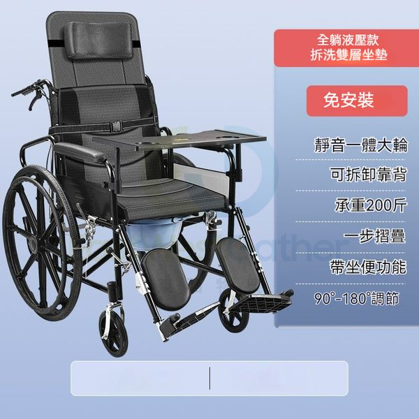包安裝送貨-【全躺液壓款】可躺(送餐桌便桶)-輪椅 老人代步車 折疊輪椅 C22187-08