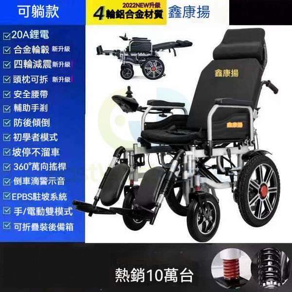 包安裝送貨-【可躺款】四輪減震 、20A鋰電【30-35公里】便攜款26鋰電-電動輪椅 老人代步車 電動折疊輪椅 C22188-34