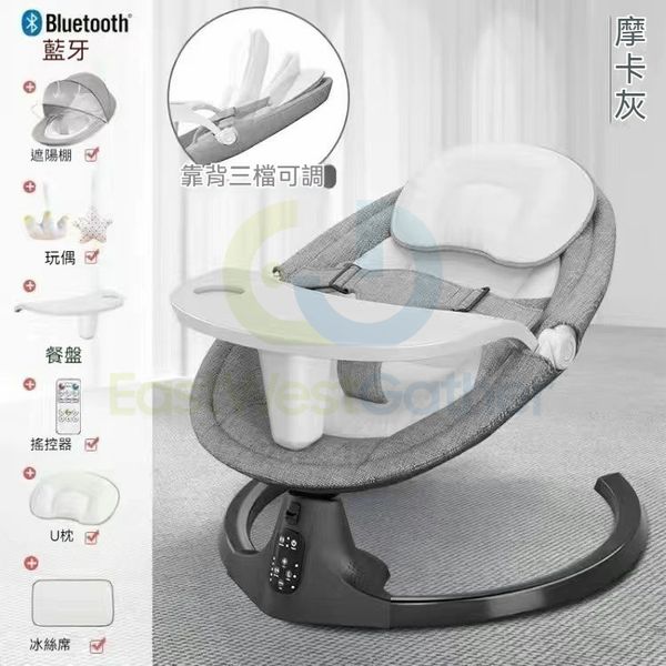 包安裝送貨-太空灰-餐盤/坐躺可調藍牙感應+六套-电动摇摇椅 C22221-09