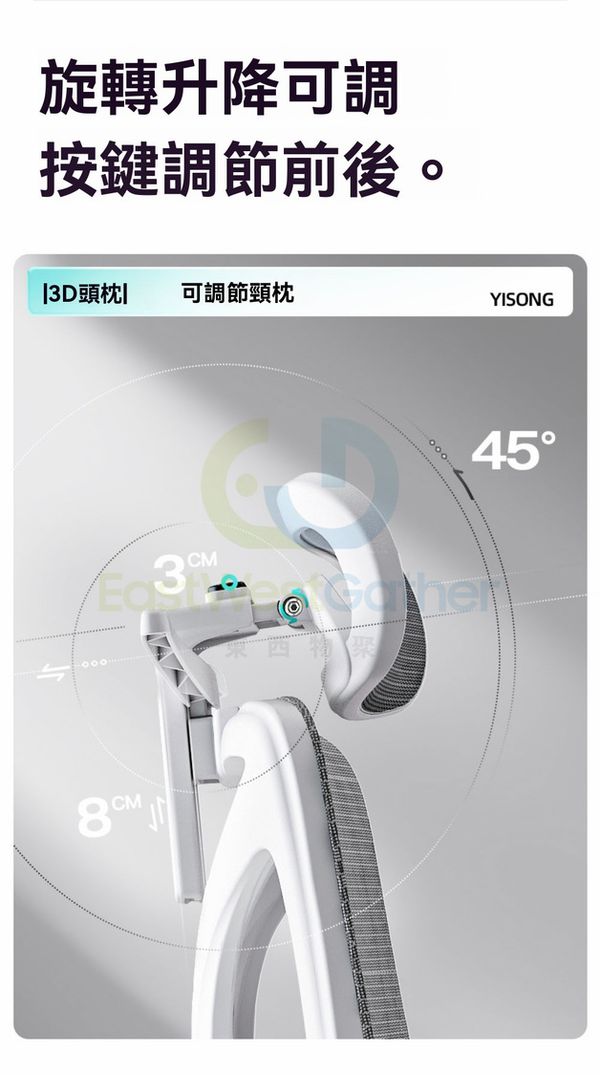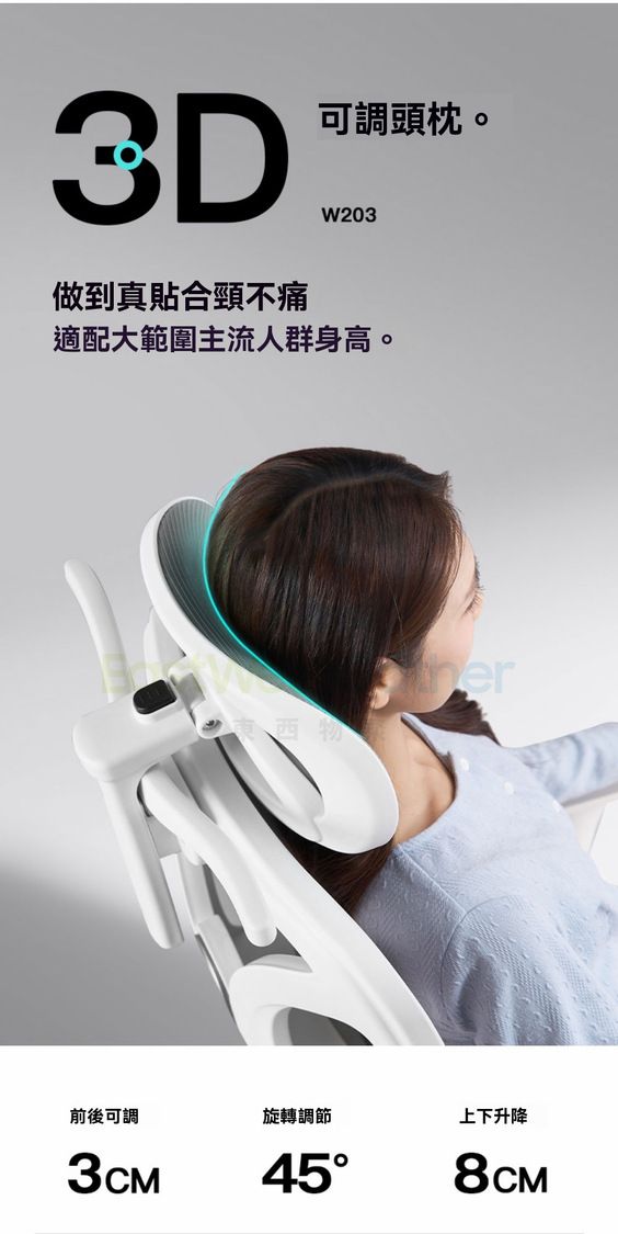 3D可調頭枕 :做到真贴合頸不痛適配大範圍主流人群身高