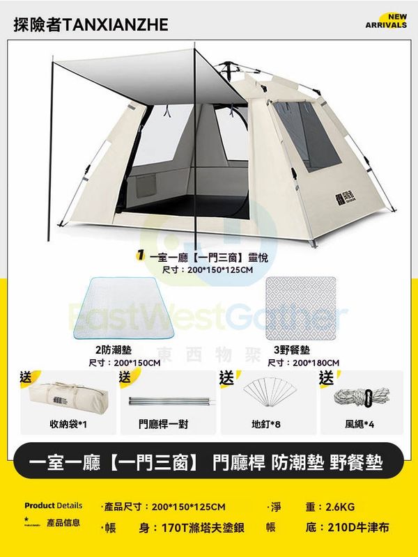 包安裝送貨-一室一廳[一門三窗]+門廳杆+防潮墊+野餐墊-露营帐篷