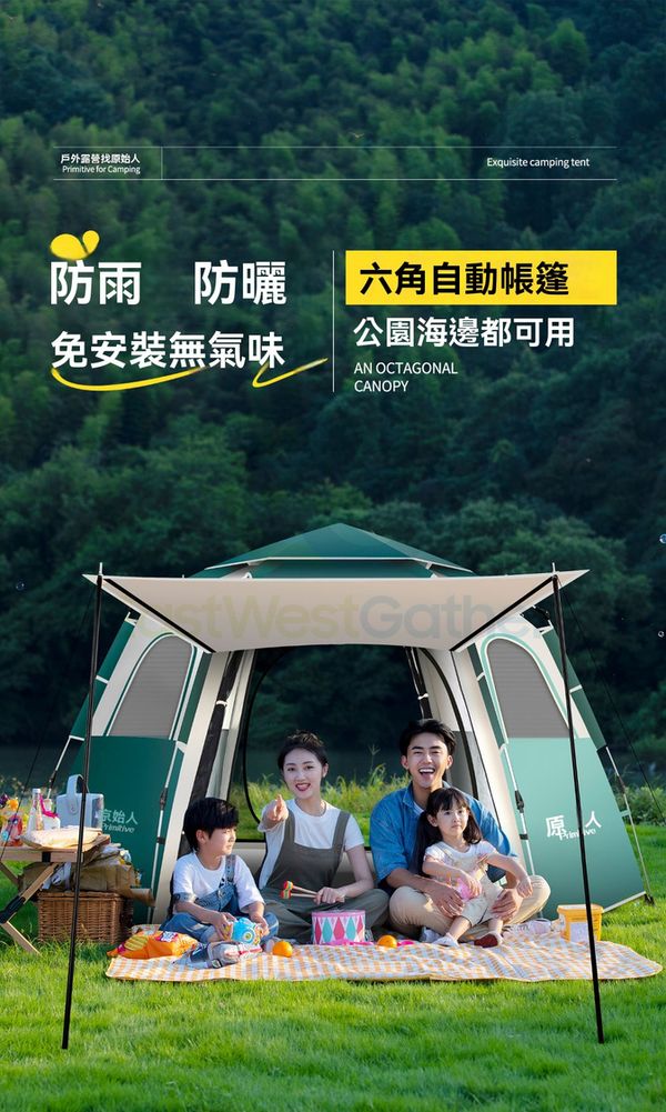 原始人露營帳篷戶外折疊可攜式野營過夜防雨加厚裝備全套自動速開