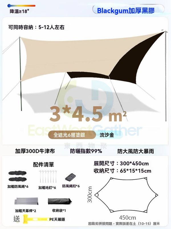 包送貨-黑膠蝶形流沙金[3*4.5]冷鈦黑膠/冰感降溫-建議5-12人-露營帳篷 速開帳篷 沙灘帳篷 C22227-17