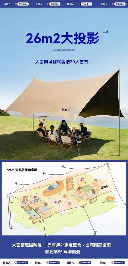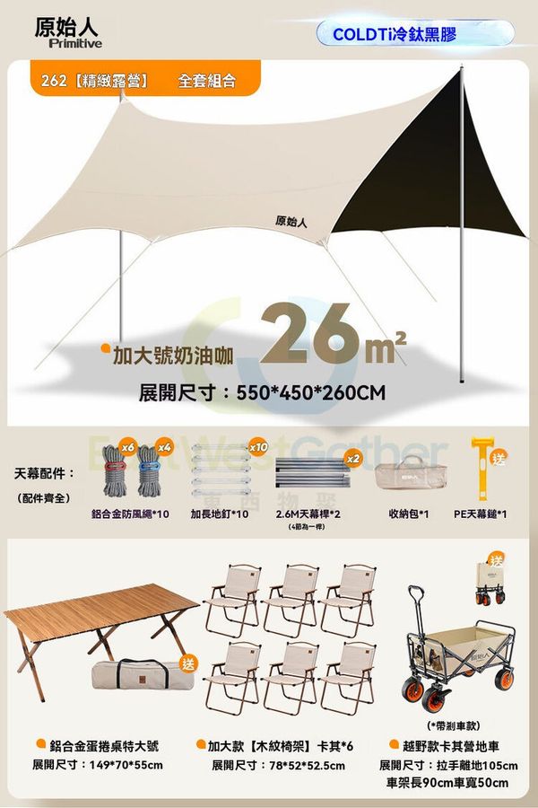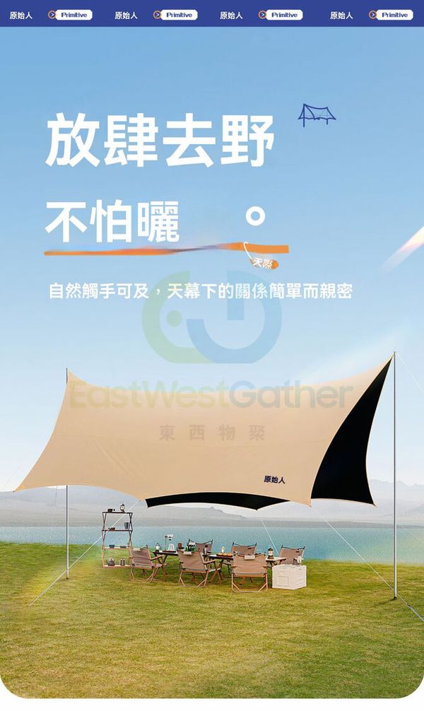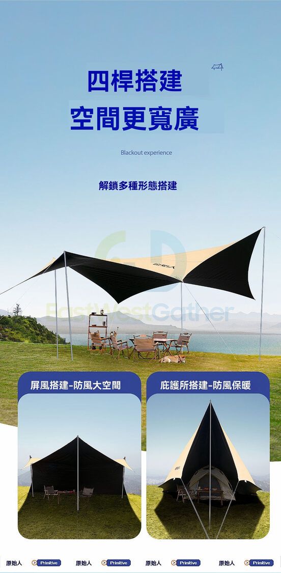 原始人黑膠天幕帳篷戶外桌椅露營全套裝備野營便攜大號防曬遮陽棚
