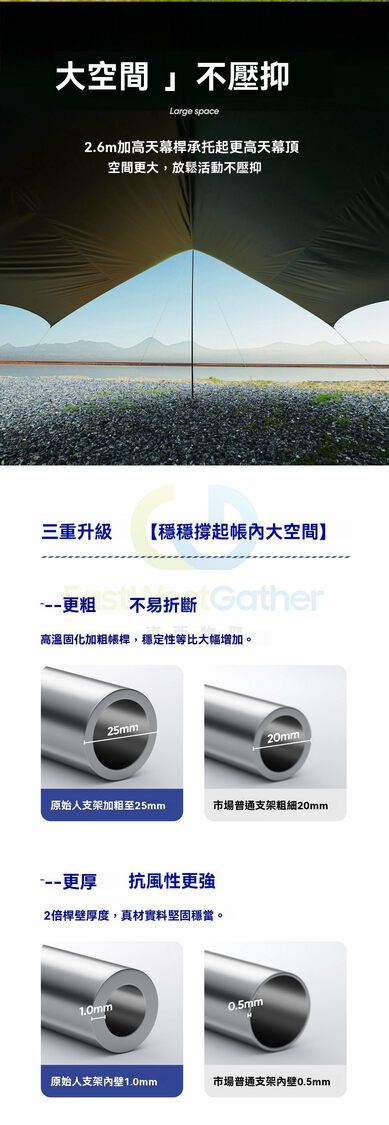 大空間 | 不壓抑:2.6m加高天幕悍承托起更高天幕顶空間更大,放鬆活動不愿抑