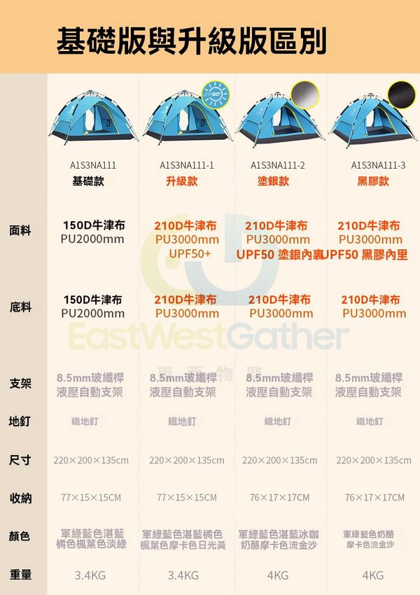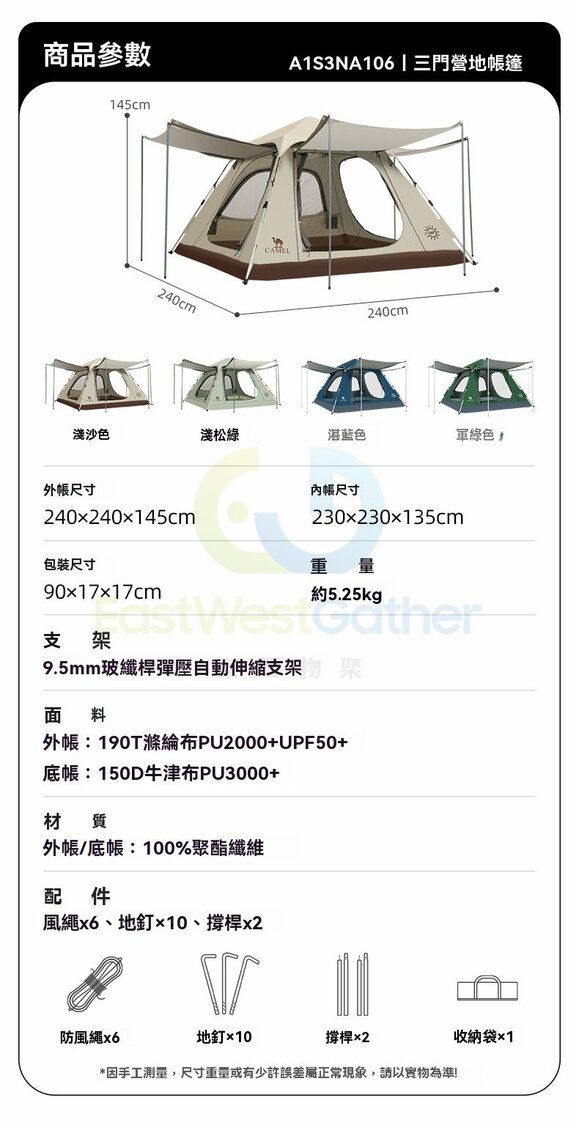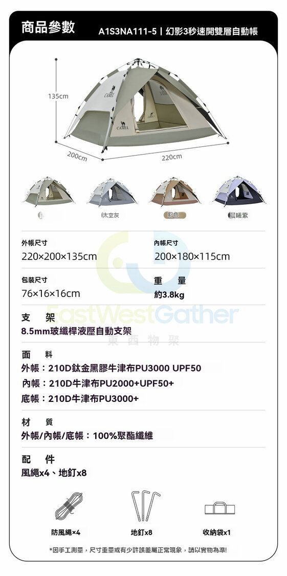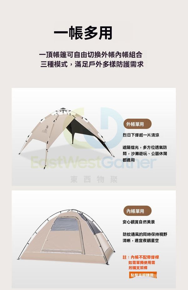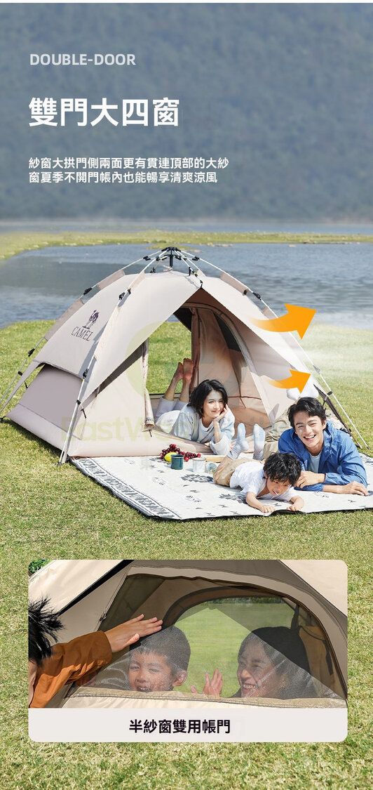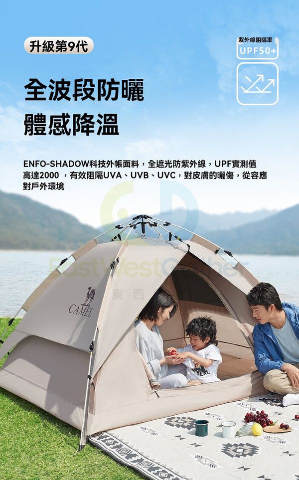 包送貨-[升級拼色][肽金黑膠防曬,雙層液壓]幻影沙漠駝-露營帳篷 速開帳篷 沙灘帳篷