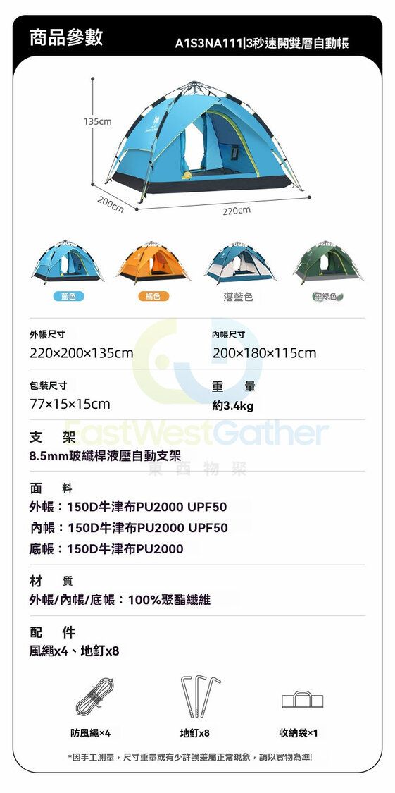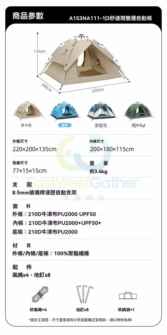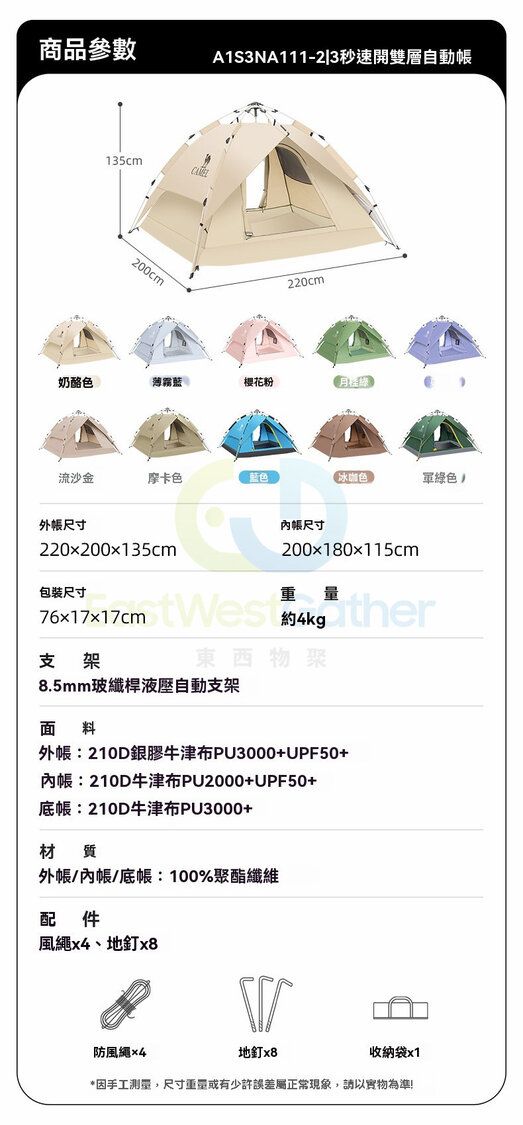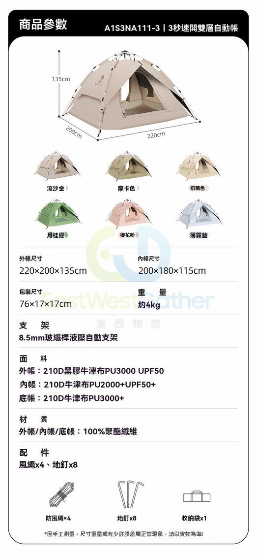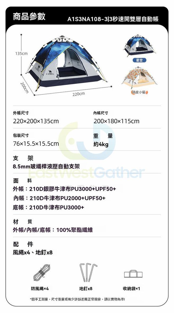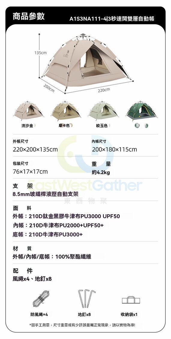 包送貨-[升級拼色][肽金黑膠防曬,雙層液壓]幻影沙漠駝-露營帳篷 速開帳篷 沙灘帳篷