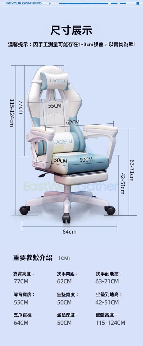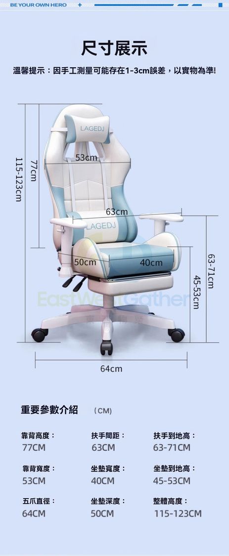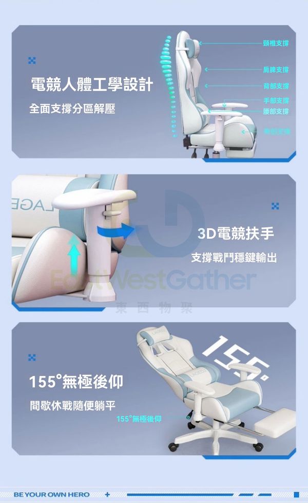 電競人體工學設計 全面支撑分區解壓
