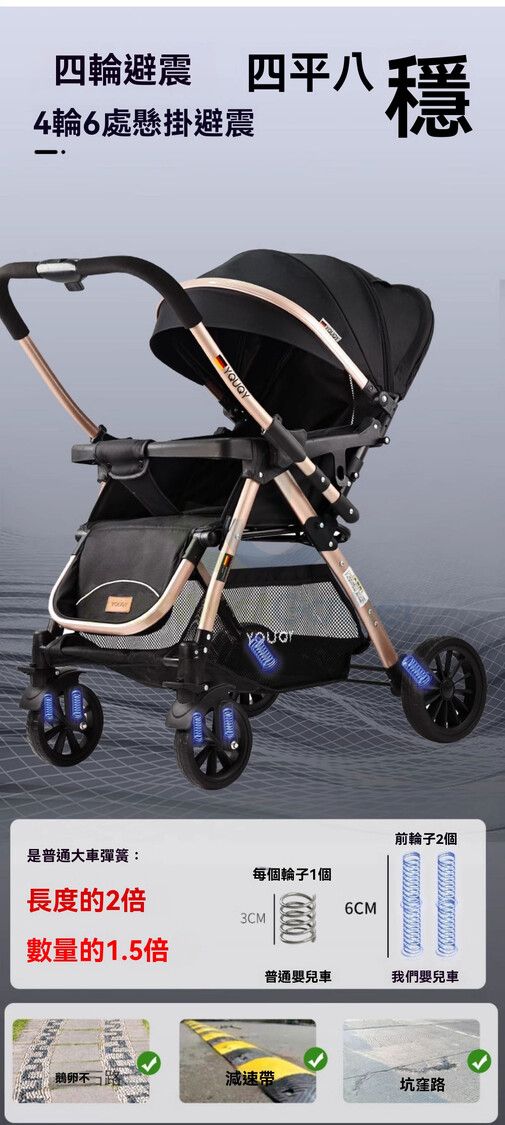新生兒嬰兒推車可坐可躺雙向兒童減震折疊寶寶高景觀嬰兒車