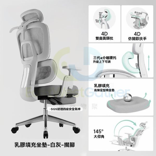 包安裝送貨-【入戶-鬆軟棉坐】臻享白灰+擱腳/四級氣杆 、鋁合金腳-電競椅 學習椅 電腦椅 辦公椅 寫字樓椅子