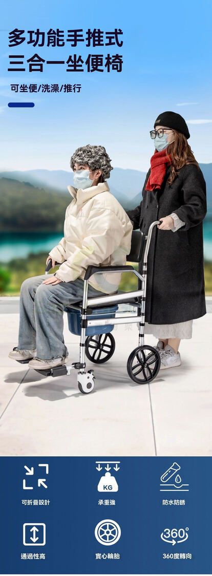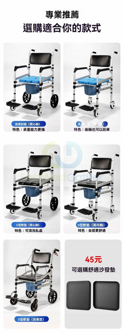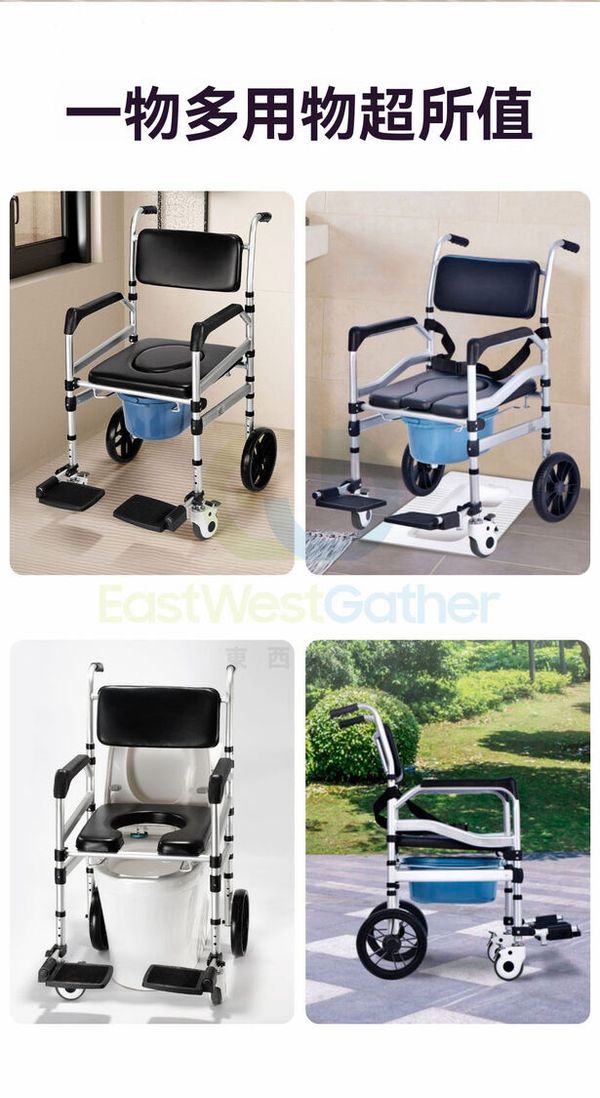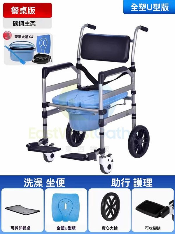 包送貨-餐桌版 17款 碳鋼 全塑U板+洗澡封板+防寒墊 實心大輪-坐便器 移動馬桶 洗澡椅 淋浴椅 坐廁椅