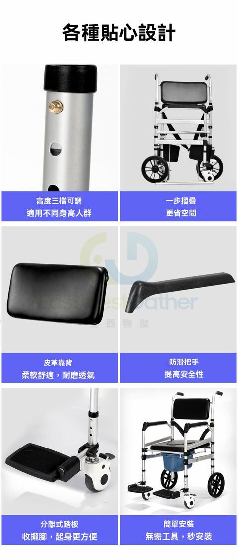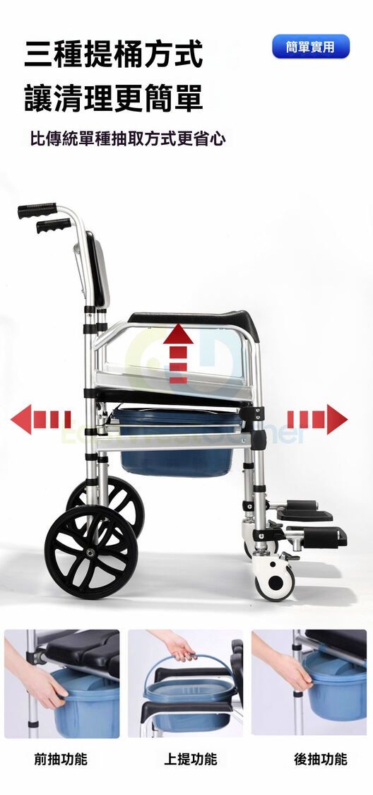 坐板高度可調節 可軽鬆推入馬桶使用