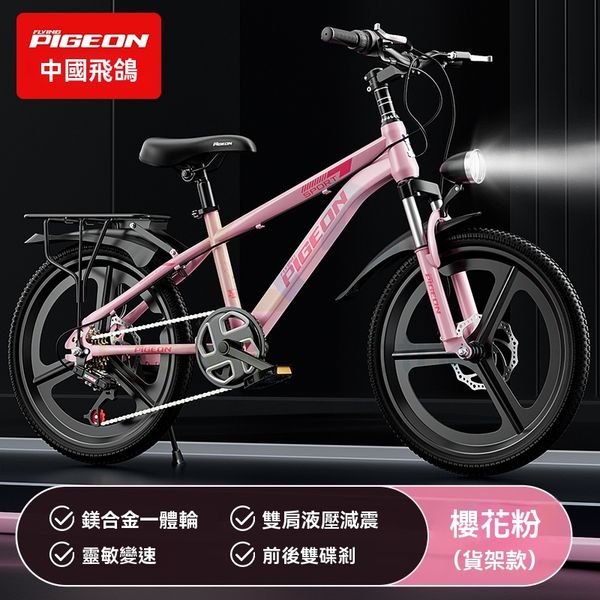 包安裝送貨-22寸 、櫻花粉鎂合金一體輪+變速+雙碟刹+後座+挎包 98%裝+避震-兒童單車 兒童自行車 山地自行車 兒童玩具車 兒童腳踏車