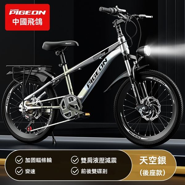 包安裝送貨-24英寸 、太空銀加固輻條輪+變速+雙碟刹+後座+挎包 98%裝+避震-兒童單車 兒童自行車 山地自行車 兒童玩具車 兒童腳踏車