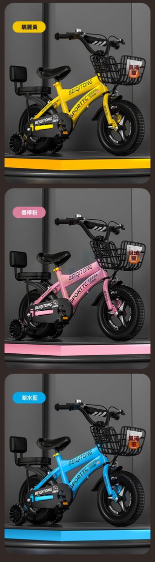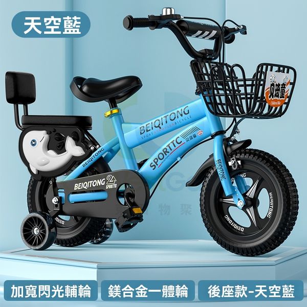 包安裝送貨-12寸、尊享藍色【合金一體輪】加寬暴君閃光輪+後座+禮包護網-兒童單車 兒童自行車 山地自行車 兒童玩具車 兒童腳踏車