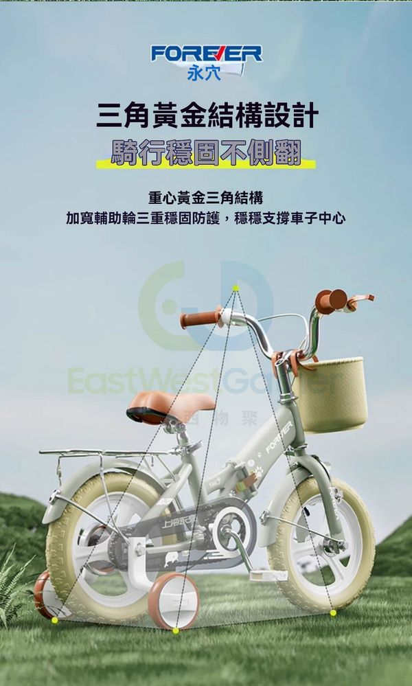 重心黄金三角結構加寬辅助輪三重穩固防護,穩穩支撑車子中心